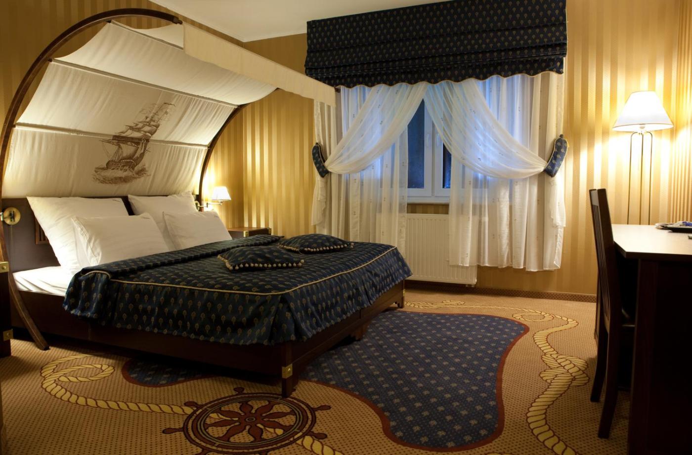 Pokój typu Standard z łóżkiem typu king-size oraz widokiem na jezioro. Pokój ten urządzony jest w stylu luksusowej kajuty i oferuje stylowe meble oraz biurko. Łóżko jest wyposażone w wyjątkowy baldachim. Pokój Dwuosobowy - 3 osobowy. Powierzchnia pokoju ok.: 21 mkw. ;