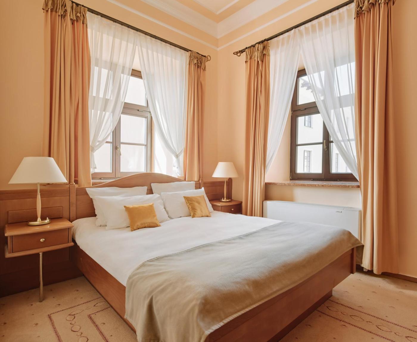 Apartament typu Junior Suite z rozkładaną sofą (3 osoby dorosłe). Jest to pokój z miejscem do pracy z biurkiem, zestawem do parzenia kawy, telewizorem oraz łazienką z wanną lub prysznicem i suszarką do włosów. Apartament typu Suite - 4 osobowy. Powierzchnia pokoju ok.: 20 mkw. ;